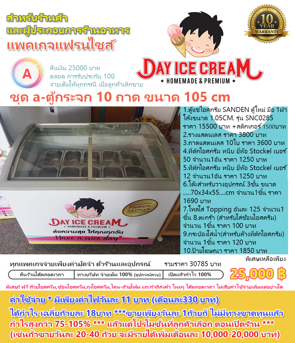 สำหรับลูกค้าที่เลือกเปิดร้าน เดย์ไอศครีม ด้วยราคาขาย ถ้วยละ 35 บาท ก็ยังกำไรสูงกว่า 65-75 % จากการซื้อไอศครีมไปขาย นะครับ : )